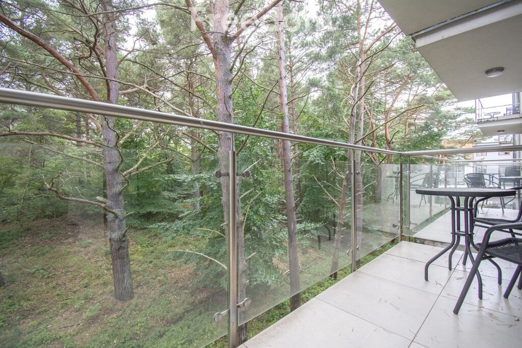 - Duży balkon z widokiem na las sosnowy – spokój, natura i morski