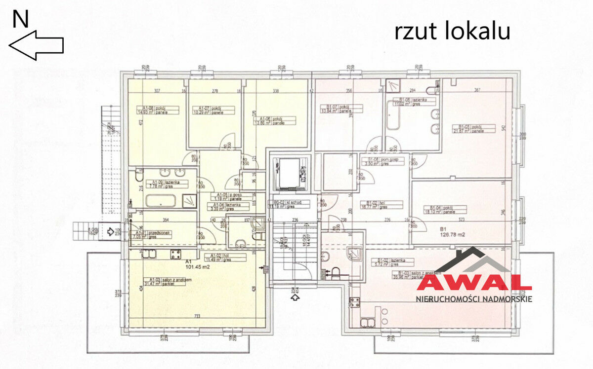 Oferta dot. lokalu nr A1 położonego na parterze o pow. 101,45 m2, składającego się z: