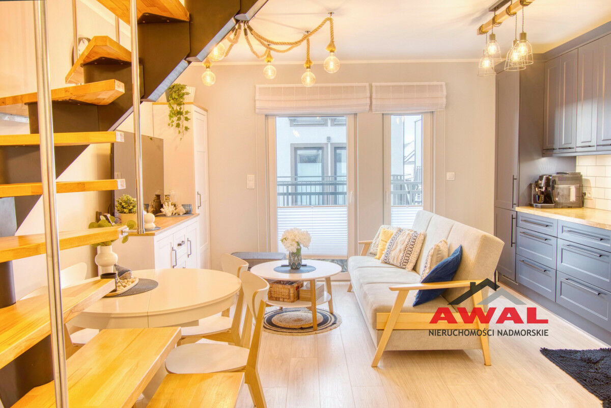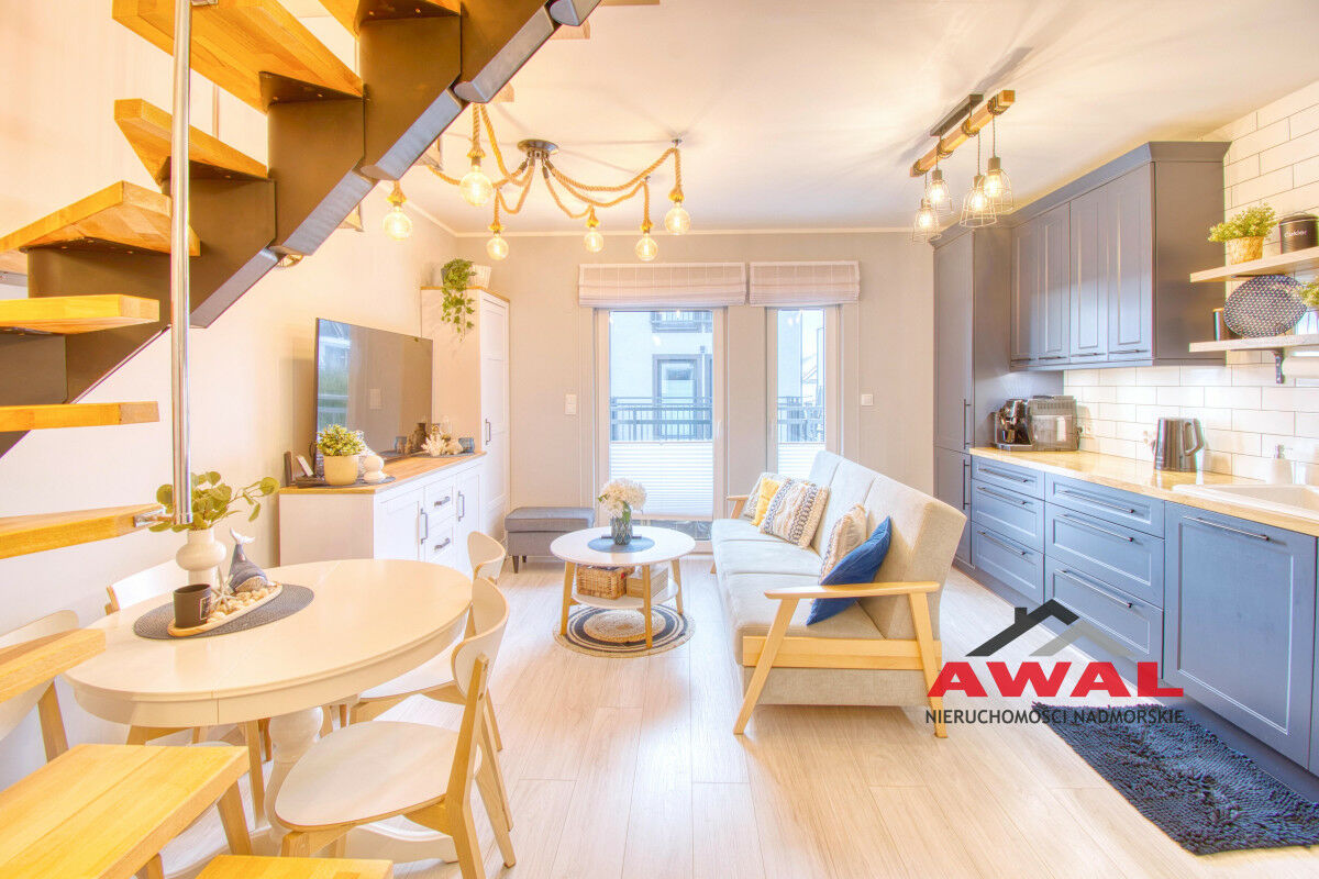 Jastrzębia Góra ul. Podgrzybkowa (odległość ok. 800 m od morza, ok. 700 m do latarni morskiej, ok. 2 km do centrum miejscowości)Dwupoziomowe, 3-pokojowe mieszkanie o pow. 54,91 m² położone na pierwszym piętrze