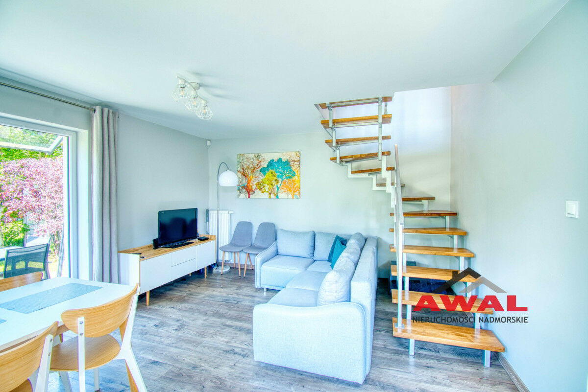 2-poziomowy apartament o pow. 62,15 m² (połówka domu w zabudowie bliźniaczej) znajduje się w urokliwej i spokojnej części Jastrzębiej Góry. Gotowy do wprowadzenia lub wynajmu. Wykończony pod klucz : umeblowany i w pełni wyposażony. Ogrzewanie gazowe: 2-funkcyjny piec gazowy.